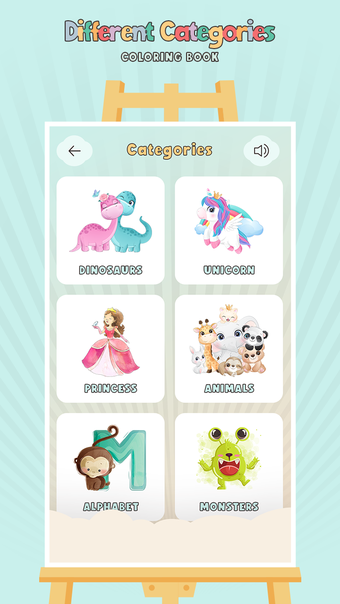 Uygulama, çocuklar için birden fazla sanat boyama sayfası içerir ve küçük çocuklar çizime başlayabilirler. Oyundaki resimler hayvanlar, doğa, dinozorlar ve diğer hayvanların resimleri olup, çocuklar özgürce boyayabilirler.